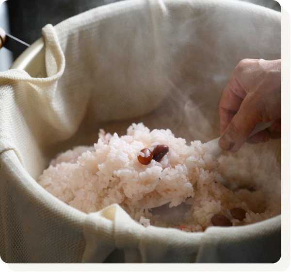 私たちは30年以上、「もち米団地」として米を共同生産し、現在では約70町の広大な田んぼで稲作を行っています。収穫後も、割れ米を防ぐために保管庫で二段階に分けて乾燥するなど、出荷まで丁寧に作業します。 大雪ファームのもち米は他所のものより粒が大きく、粘りが強いおいしいお餅ができあがります。